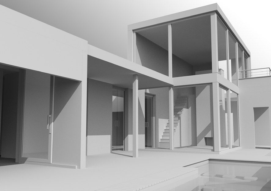 A primera vista lo que más me llama la atención son los artefactos que tienes en diferentes zonas de la escena. Lo segundo yo le metería sombreas de área (es algo personal) y las baldosas de la piscina las haría con un material en vez de modelarlas, pero le queda mucho curro aún, la escena promete, ánimo.