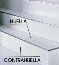 La contrahuella sería la elevación del peldaño, la zona perpendicular a la huella, que suele medir unos 18 centímetros más o menos.