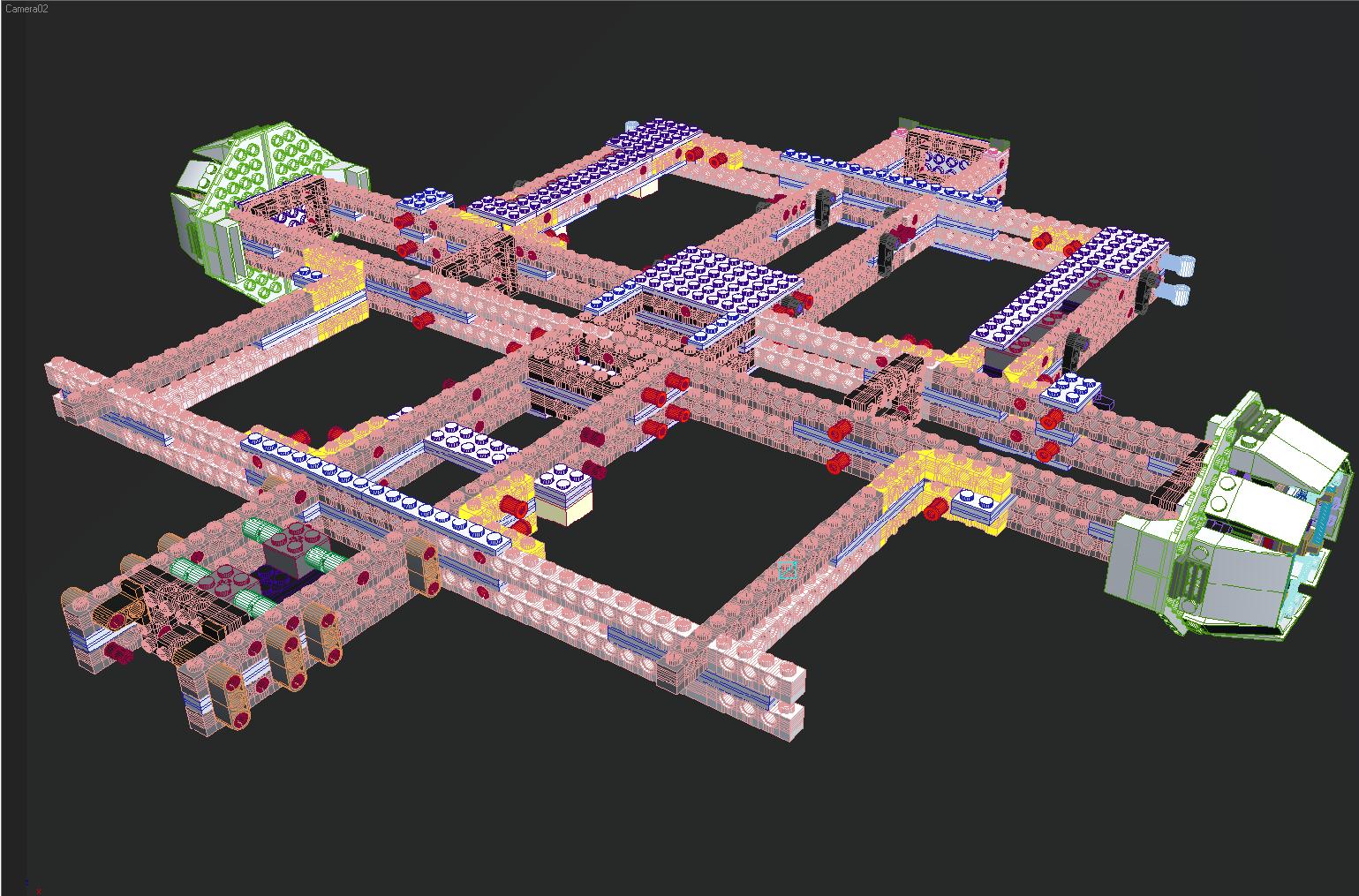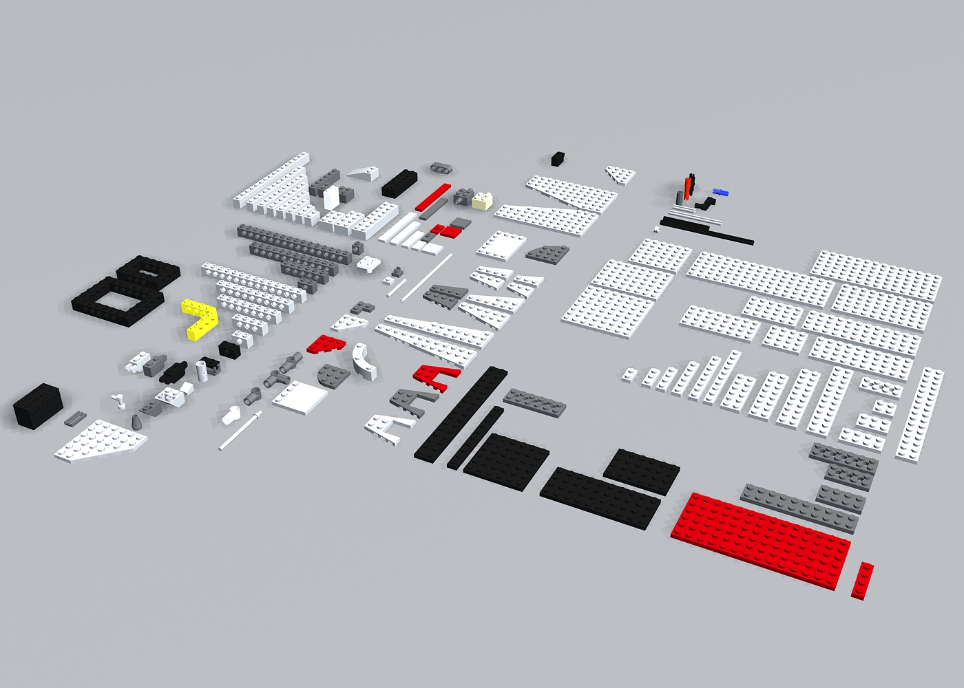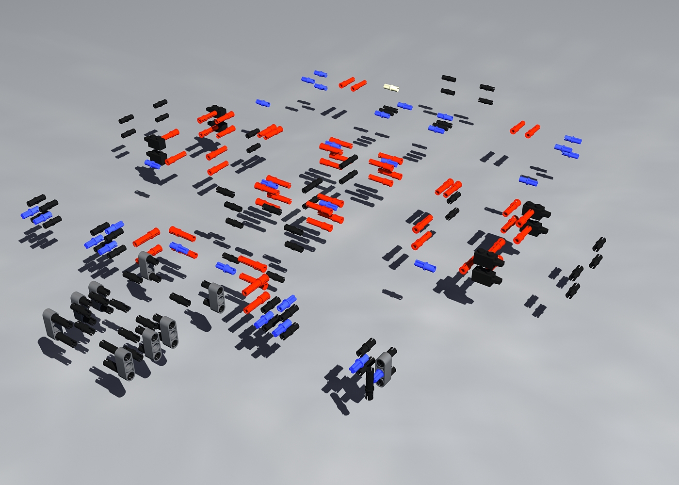 Estoy modelando pieza por pieza con el mayor detalle estructural posible sin entrar en biselados de bordes ni en partes de las piezas innecesarias a la hora de trabajar con ellas para montar el modelo final. Ahora mismo tengo 140 piezas modeladas, las suficientes como para empezar a montar ciertas partes. Esto es una masocada con mayúsculas, hay piezas (como los pines technic) que cuestan lo mismo de modelar que 20 placas de las normales, pero bueno. Encima ni siquiera se verán en el render final, pero tiene que haber dolor, mucho dolor.