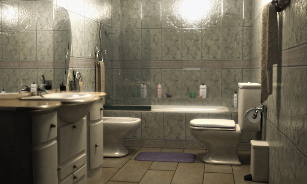 Aquí les dejo un par de imágenes, una de un aseo con una chica fantasm todo lleno de sangre y velas como si fuera satánico y el mismo aseo normal, limpio como el que tendrías en tu casa.