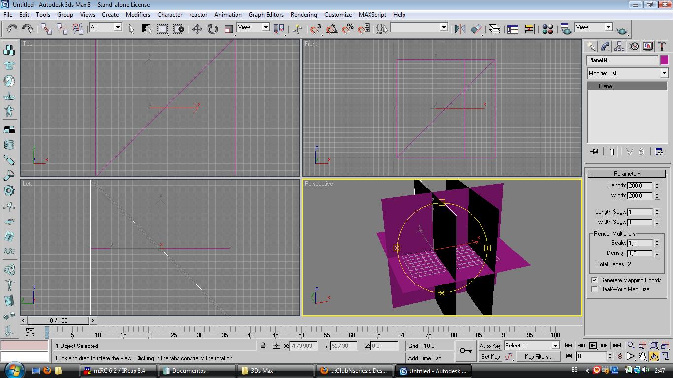 Hola buenas a todos/as. Ayer empecé a mirar tutoriales y demás de 3ds hice algunas cosinas y me decidí a hacer un coche (lo sé, demasiado precipitado, pero quiero intentarlo), pues bien, resulta que me pongo a hacer los planos para colocar los blueprints y cuando giro la cámara resulta que el plano desaparece, depende cómo ponga la cámara se ve o no, no sé si me explico (seguramente no) así que, os dejo un par de capturas: