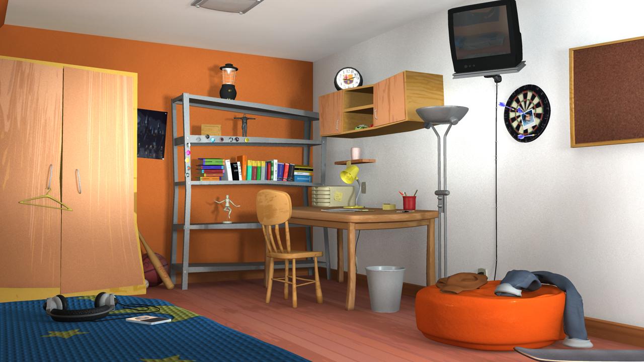 Buenas. Pues estoy haciendo un curso de iniciación de Maya y tenemos que hacer un corto. Y este es el escenario, un dormitorio de un chico joven. La verdad que la historia no la tengo aun, así que, si tenéis alguna idea será bienvenida.