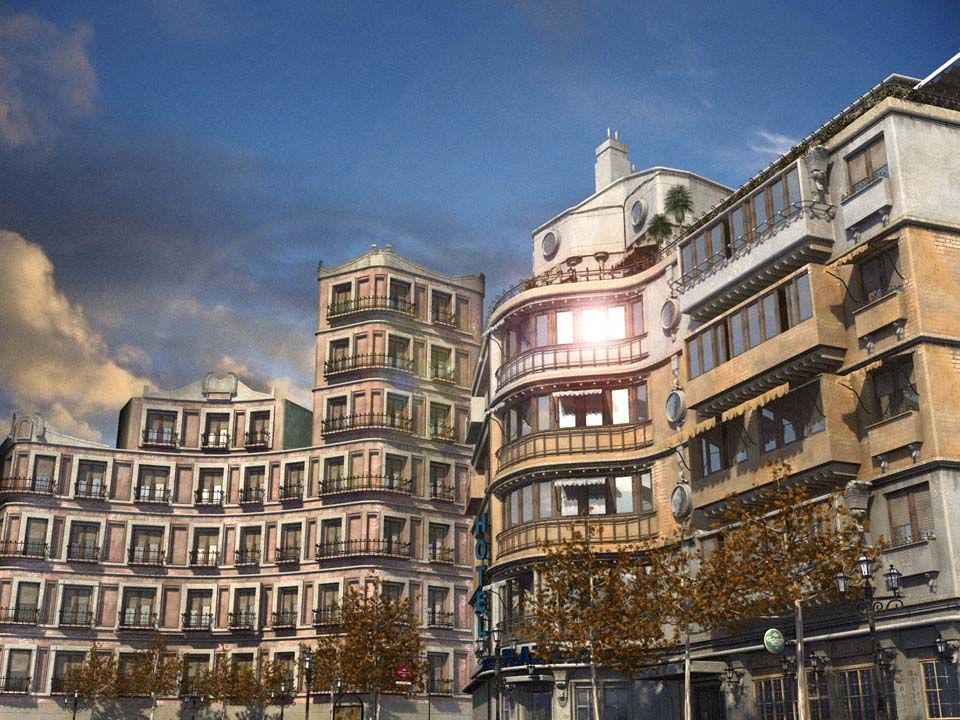 Aprovecho este pequeño hueco que tengo para decirte que, es impresionante, pero vaya pedazo de trabajo. Pero cuantas horas hay ahí? Cuantos polígonos? Qué ordenador tienes los planos de las casas están hechos a huevo o importados del Cad? En fin, no pararía de preguntar cosas y admirar las imágenes al mismo tiempo. Me gustan mucho los encuadres de la cámara, tienen un estilo diría yo fotográfico, incluso la iluminación, no soy entendida en el tema, pero así parece. Pienso como carpetano, que hay en comunión varias disciplinas en estos trabajos, podrías hablarnos de ellas? O está todo hecho a huevo, partiendo de cero? Sería la hostia si es así, sería la hostia.