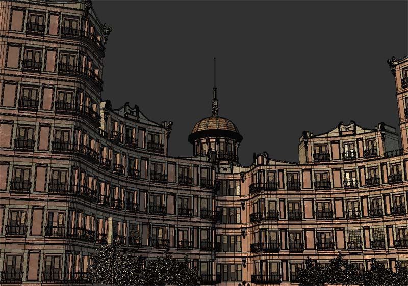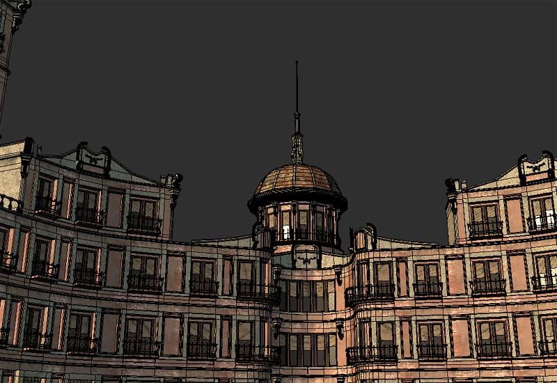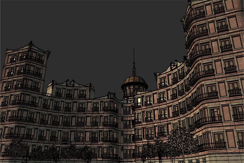 Bueno a lo que iba aquí dejo un wire del edificio que se ve en segundo plano en las escenas anteriores, sigo trabajando en él, pero ya está casi concluido, la captura está hecha con las texturas aplicadas, no sé que os parecerá. Y de paso os cuelgo unos renders de cómo podría quedar, ya se me olvidaba las texturas os las publicaré la para la próxima, tampoco es que sean la ostia.