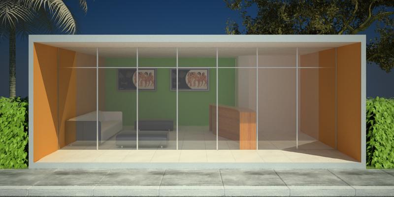 En general, creo que a la imagen le faltan las texturas propias de cada material, es decir, el vidrio refleja, la acera es rugosa, la pared será satinada.