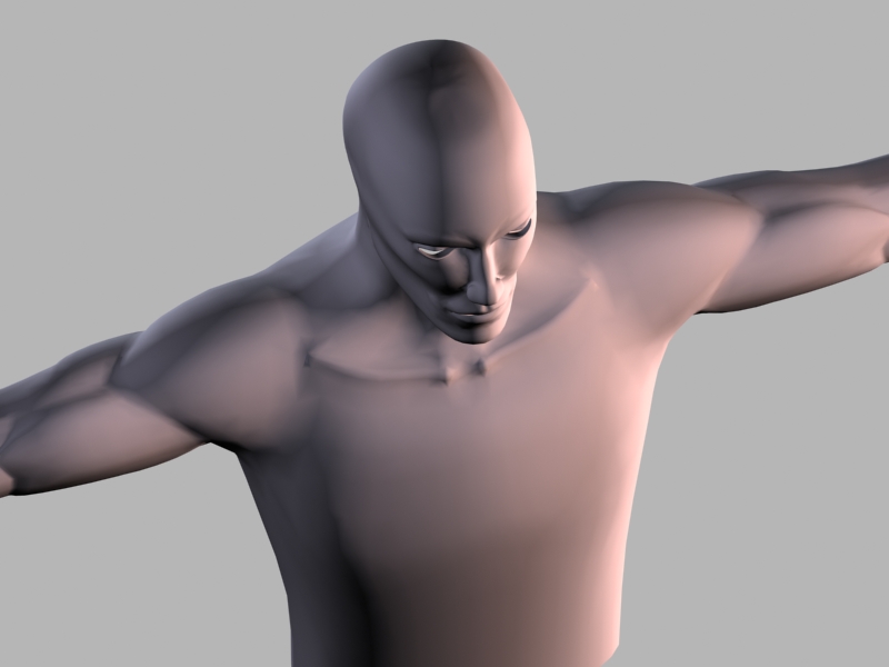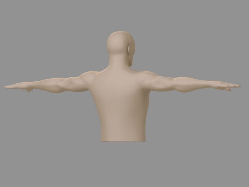 Tienes razón Mars las clavículas de hecho, no deben ser rectas ya que, al estirar los brazos en posición vertical se elevan ligeramente hasta la altura de los hombros y sí, son demasiado estrechas las modele solo para tener una referencia, os paso un nuevo render desde otra vista a ver si así lo apreciáis mejor.