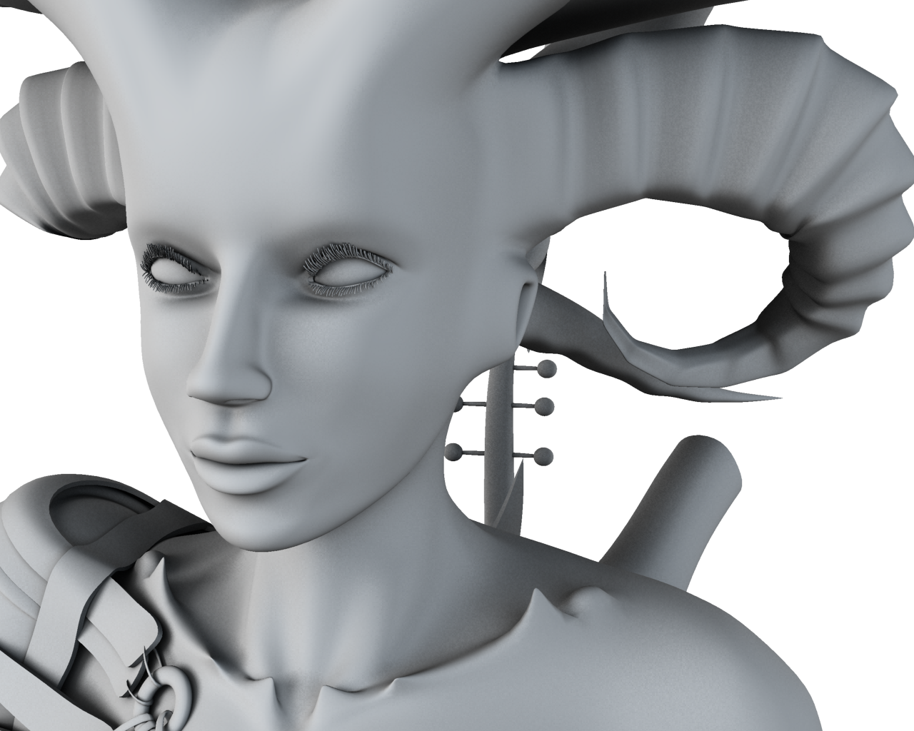 Esta genial, me gusta mucho. El tema pestañas, son todo polígonos? En la nariz, veo vértices raros. Y lo de los picos en la clavícula, no me convencen nada.
