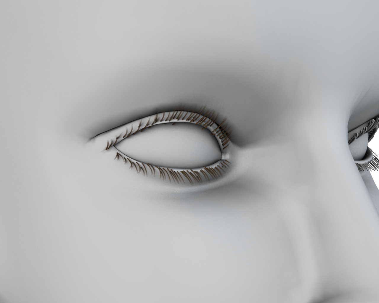 Otra cosa es el tema de las pestañas, son más estrechas al final y no están tan apelotonadas y me parece una buena opción que las hayas hecho con geometría. Un saludo.