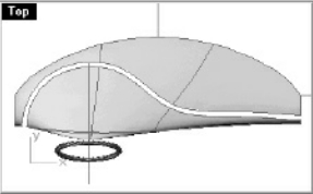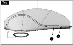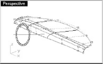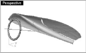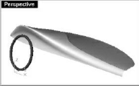 1 abra el archivo dash.3DM. Con el comando Loft, cree una superficie de transición en las cuatro curvas con la opción lose. La opción lose crea la geometría más simple posible y es esencial para crear una superficie con esta técnica. Con esta opción la superficie no tocara las curvas interiores de la transición, pero debe tener una apariencia suave y limpia.