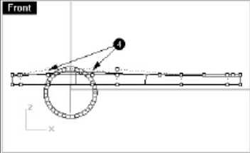 8 utilice la opción nudge para mover los puntos en las ventanas top (5) y front (6).