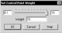 7 en el cuadro de diálogo set control point weight, mueva el botón deslizante hacia la derecha. Modificar el grosor de algunos puntos proporciona más o menos control local sobre la superficie más cercana a los puntos.