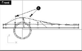 Mantenga la superficie lo más simple posible. Añada puntos de control (nodos) con moderación y sólo cuando sea necesario. Antes de añadir puntos de control, asegúrese de que las curvas grandes de la superficie sean aceptables. Una vez que se añaden puntos de control (nodos) es mucho más difícil editar y establecer la tolerancia de las partes largas de los barridos de las curvas.