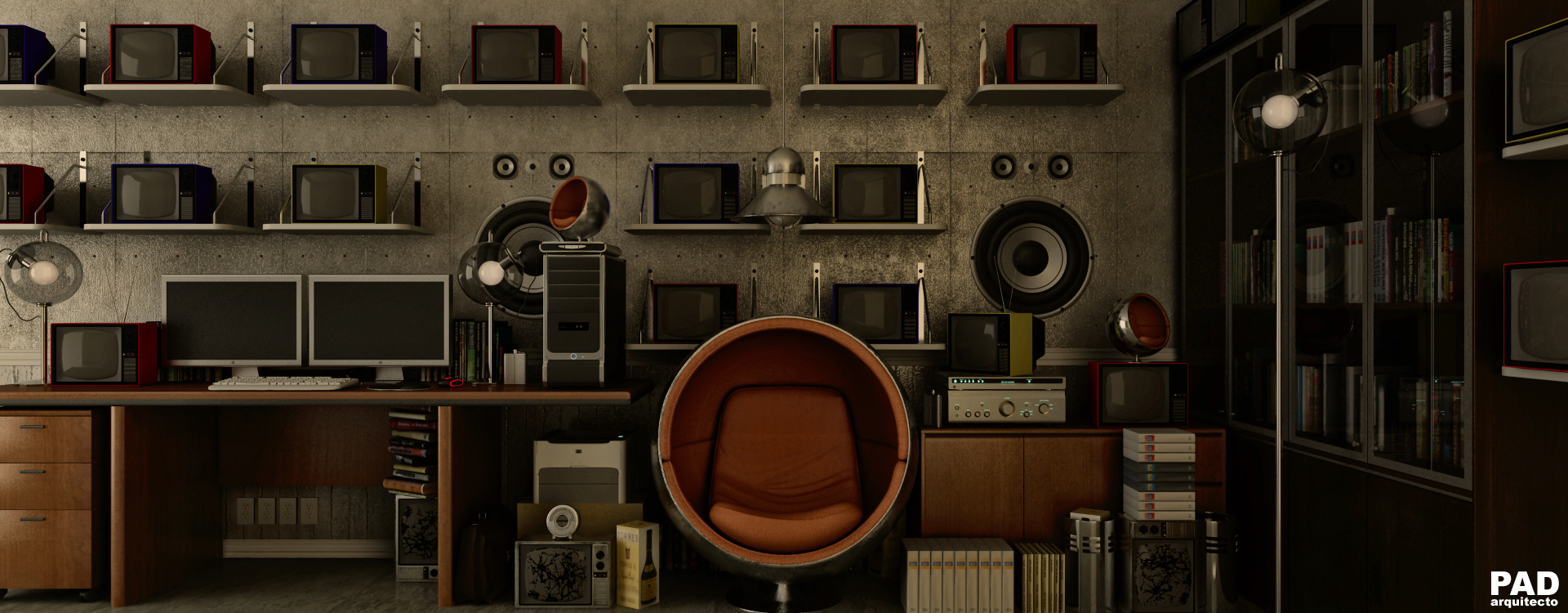 Qué tal de nuevo. Esta genial la composición, la iluminación, los matices. Lo único es el material auto iluminado de las televisiones, se me hace un poco fuerte, tal vez si generara algunos brillos y fuesen un poco más tenues o con menor intensidad.