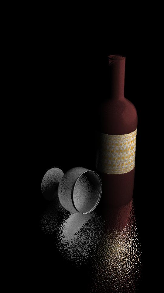Como pueden observar si es que ven la imagen la botella y la copa del último renderizado se notan como si tuvieran una textura de tipo noise cosa que en realidad no tiene y eso me sale en todos los renderizados que e echo o mejor dicho logrado hacer hasta ahora si saben como quitarle ese detalle que les digo se los agradezco.