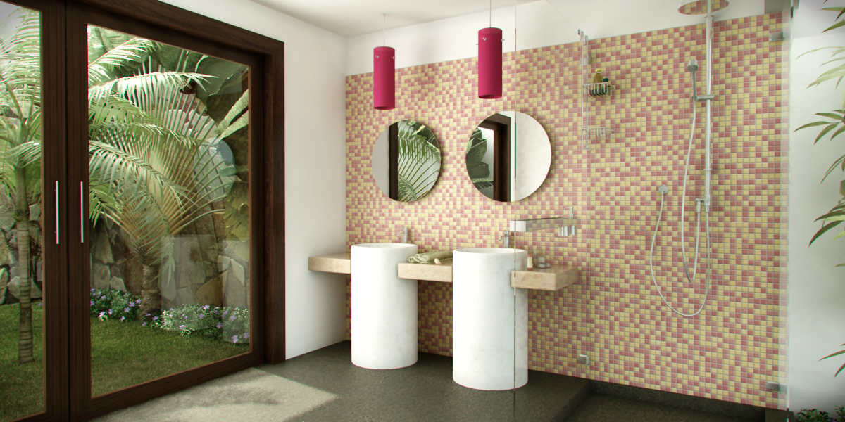 Haola Fragot, en general, creo que te quedó bien, me gusta la integración del jardín, yo solamente te aconsejaría darle más Bump y un poco de glossiness a los azulejos de la pared o un displacement, te quedaría mucho más resultón, y también me he fijado que con un Bump mejorarían las piedras de la pared del jardín.