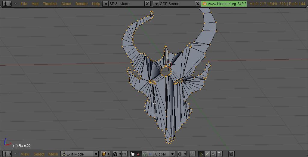 Buenas tardes, buenos días, buenas noches. Tengo un problema con el facing de un objeto que quiero hacer en Blender, el objeto es el logotipo de demon hunter, un grupo de hardkore cristiano (muy bueno, si les gusta el metal se los recomiendo) bueno el punto es que cuando creo las caras usando fgon lo que pasa es que, al hacer el render salen unas rayas muy feas, lo que quiero es que quede liso y yo después le doy relieve, pero lo que pasa es eso, aquí adjunto un render y la 3dwindow para que la vean y por favor me digan.