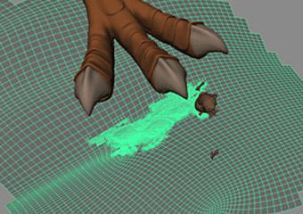 La solución que da César me aparece la mejor, el único problema que veo es cómo hacer que la suferficie deformada se quede deformada cuando la pisada se separe de esa superficie.