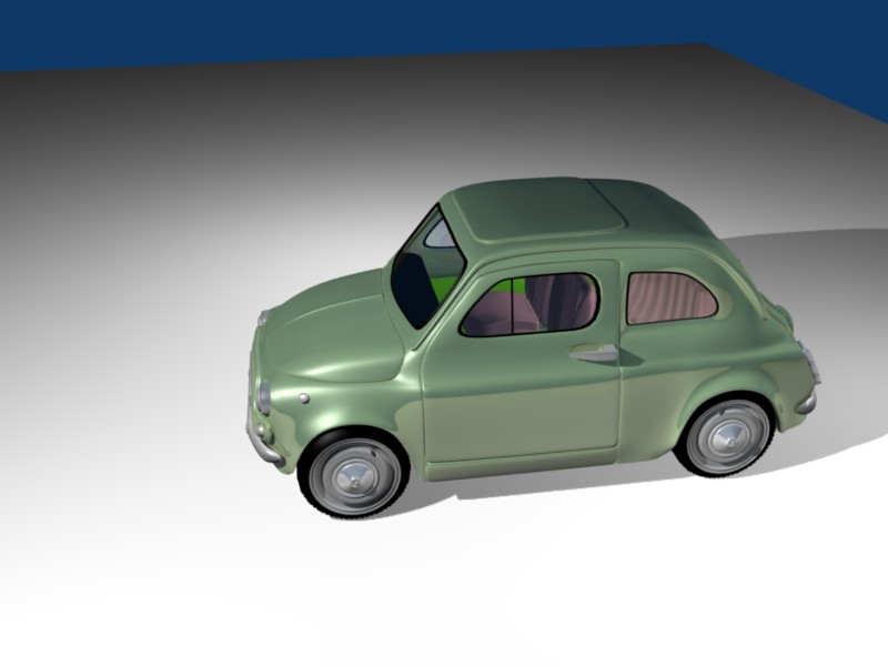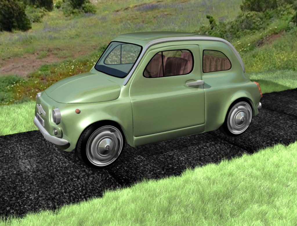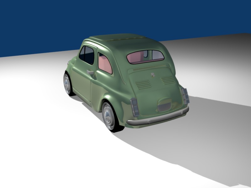 He estado modelando mi segundo coche, después de un intento fallido con un aeston Martín. El modelo actual es un fíat 500 del año 1968. Me falta mejorar y terminar algunos detalles, pero básicamente está terminado.