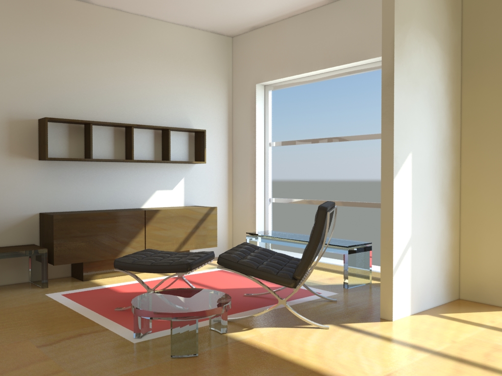 Yo también trabajo con 3ds Max, un par de cosas falta un paisaje en la ventana, faltan cosas en las bibliotecas un tele o algo y aparte no me gusta esa mesa y los bancos de acrílico o vidrio no sé que son.