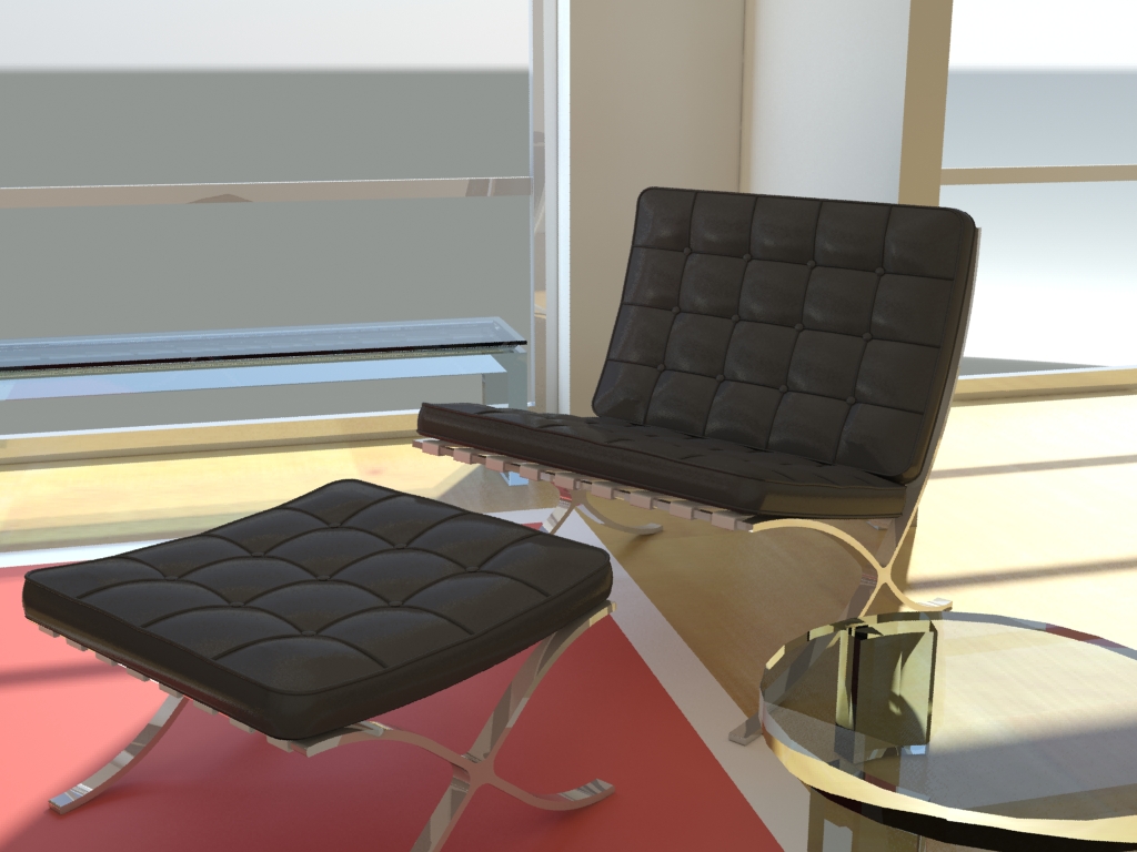Buena iluminación solo trabajar un poco más el material, por ejemplo, de la madera y el tapete se ve muy plano tal vez Hair and Fur podría ser.