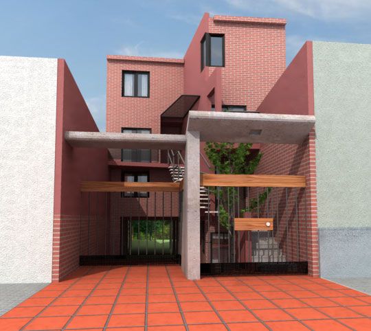 Hola. No sé, veo la imagen muy plana y además esa cosa rosa en el medio de las dos zonas de ladrillo me descoloca mucho, no sé si es hacia arriba o hacia la cámara, cambiaría la perspectiva.