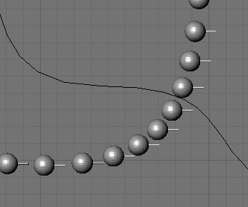 Entonces creo una esfera y las convierto en padre e hijo, y le doy a dupliverts, pero las bolas quedan muy separadas y si edito la curva y la subdivido se comen unas a otras.