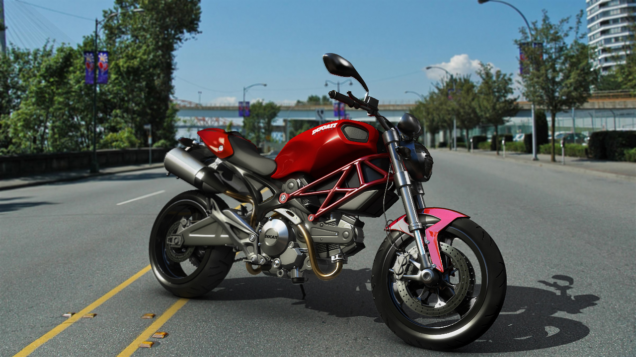 El modemo está bueno, el motor está muy bien logrado y en general la moto quedo excelente, pero como que ha mi parecer también hay un tema con la integración a la escena, a lo mejor si le pones un pase de Specular, luz o de oclusión se integra más. Y como una nota más, personal, me parece que las llantas están un poco grises, las pondría más negras.