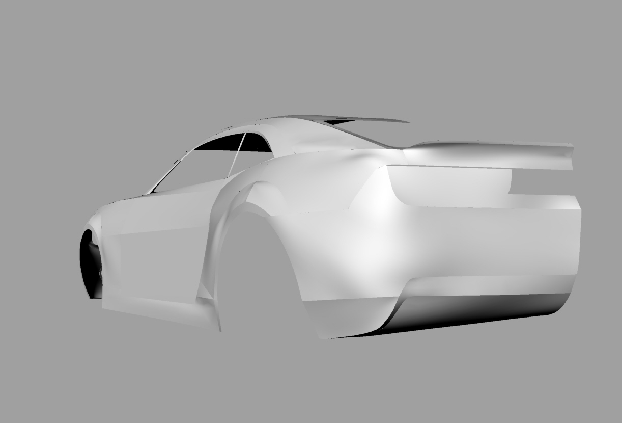 Este es mi primer carro lo estoy haciendo en Rhinoceros va con el render básico, cualquier ayuda siempre es bien recibida, como, por ejemplo, suavizar las curvas al momento de reflejar lo ya construido.