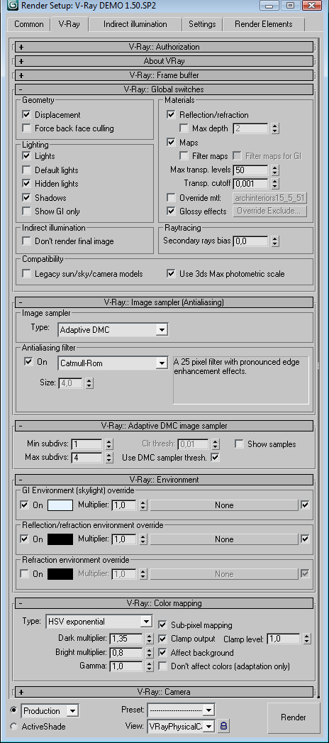 La respuesta es que yo utilizo la Vray Physical Camera y dependiendo de los valores que tenga la cámara también varían los valores de las luces. Yo consigo siempre la máxima calidad con esta cámara y creo que es la que mejor aprovecha las características de Vray. Un saludo.