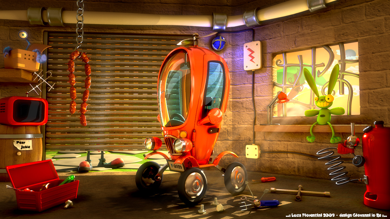 @pak3dark: lo de la profundidad un poco es por el estilo que estábamos buscando, algo muy cartoon y con un poco de cómic (como los reflejos en el vidrio del coche), por otro lado, quería ententar una técnica que había visto que era usar el Ambient Occlusion como fill/bounce light ponendola en el canal de ambient, y esto sí, quita un poco de profundidad.