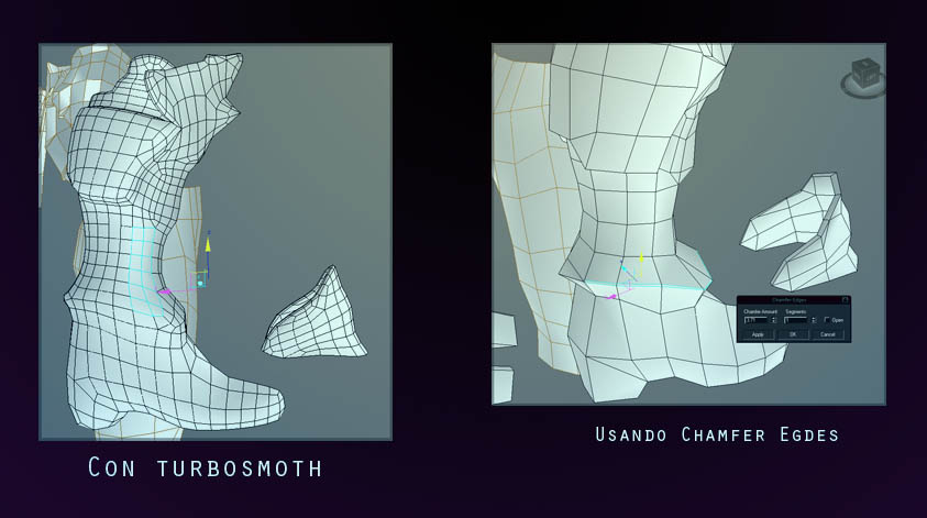Hola a todos, quisiera un consejo de parte de ustedes, es referente a la experiencia, estoy modelando armaduras, pero quiero que tengan ese detalle, con aspecto a armaduras, y algunas partes como el zapato que tenga algo de ovalado, pero cuando uso el TurboSmooth para suavizarlo, todo se deforma, hay una manera que encontré es con el chamfer creando una segmentación en los bordes que quiero que tenga esa apariencia de armadura, pero requiere un poco más de tiempo, no habrá alguna manera de seleccionar solo algunos polígonos y suavizarlos, le resto que quede con apariencia de armadura rustica (si usar el detach y segmentarlo, o alguna manera más óptima porque vi cuando uso el detach se puede separar por objeto o elemento? Qué diferencias tiene? )