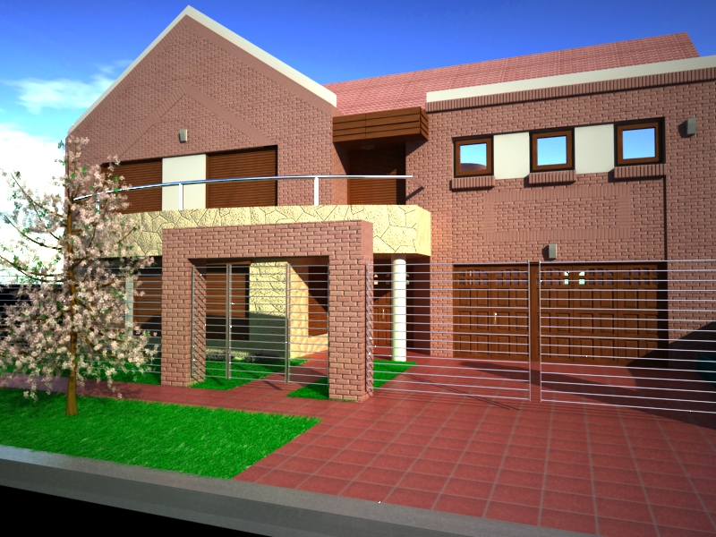 Hola gente, ando en este trabajo del frente de una casa a terminar. Tengo el problema de que hay muchas cosas que no logro hacer verse realista. Todabia faltan algunos detalles de las rejas eso esta sin terminar.
