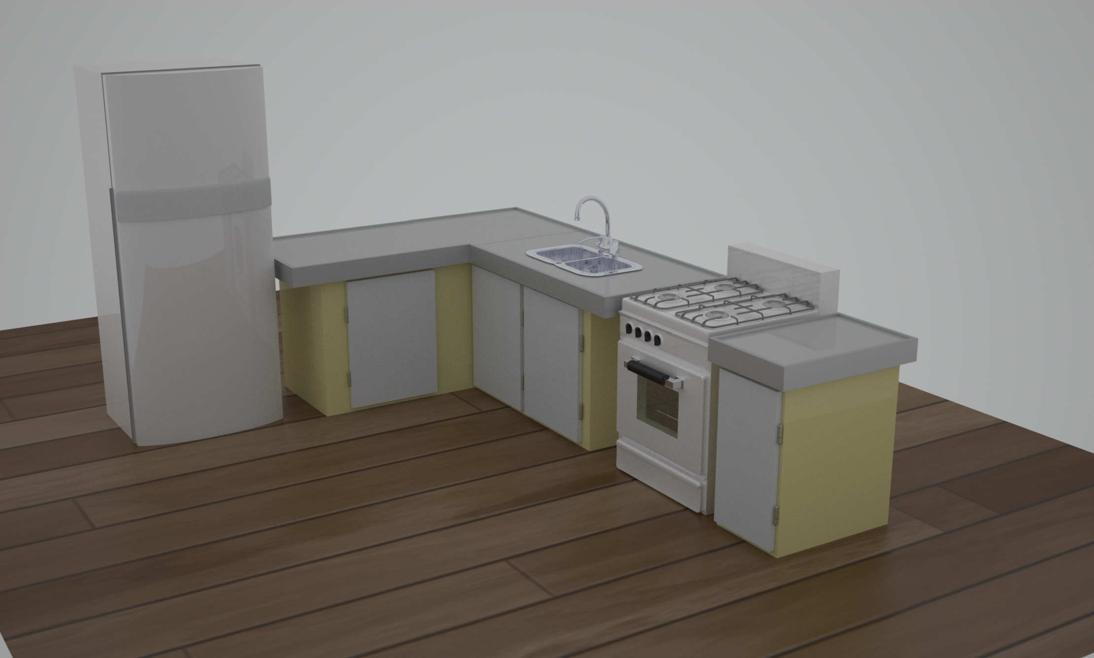 No subo los renders del baño por que, ese todavía no le cree los materiales con mawwell. Por ahora tengo el baño completo, la pieza a medias y por terminar la cocina.
