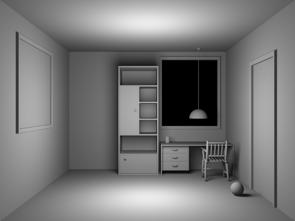 Hola slash148, ahora también es el mejor momento de iluminar, ten cuidado donde pones las luces, ya iremos viendo el cambio de la escena. Yo pondría algún cuadro más pequeño en las paredes y una papelera, saludos.