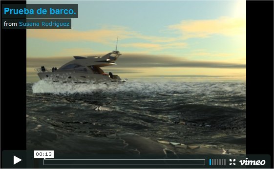 Ando trasteando cosas en 3dsmax, porque seguramente tendré que hacer una animación con mares, barcos etc. Esta es mi primera prueba. Tengo bastantes fallos, es la primera vez que me meto con partículas en 3dsmax, y no ando muy convencida. Además, he cometido el error de renderizar junto con el barco (sí, es de evermotion), y ahora el barco flota al final de la animación, pero bueno. También me falta la estela de detrás. Si veis más fallos, aparte de estos, estaría genial que los comentarais (acepto palos).