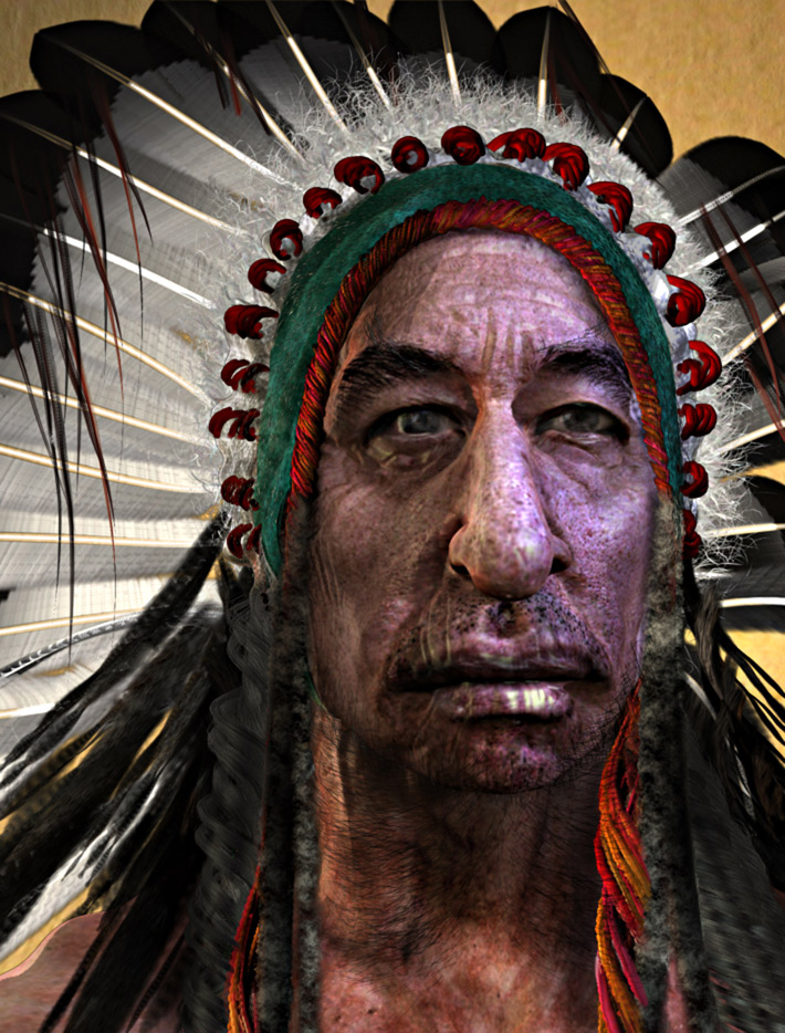 Hombre en vistas generales lo veo un tío curtido, muy curtido, parece que tiene quemaduras de tercer grado en todo el rostro, la diadema la has modelado o es un montaje fotográfico?