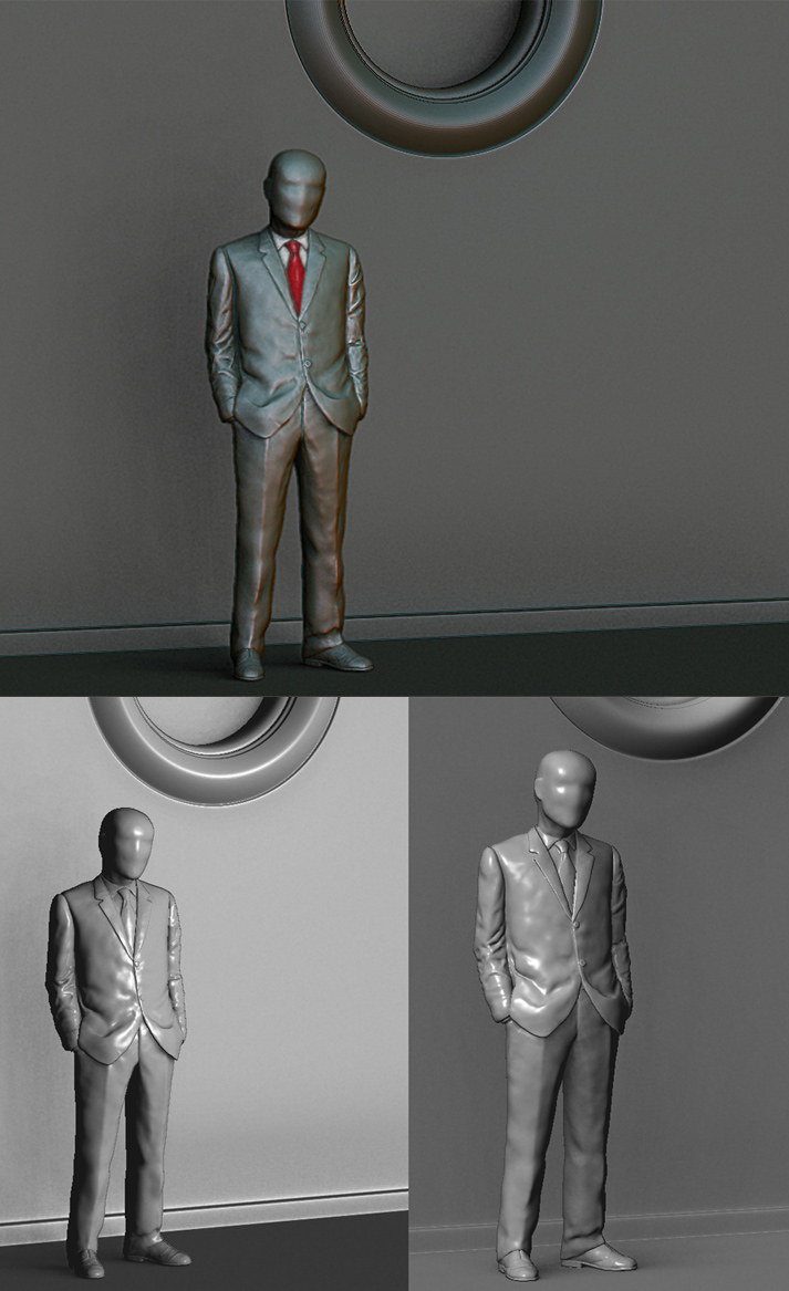 Empezando un nuevo proyecto: omescuro (hombre oscuro), basado en una figura que hice hace algún tiempo. Estoy en una fase lenta porque quiero conseguir unos buenos pliegues-arrugas del traje y me está costando, ya que quiero sacarle ese aspecto que tiene un poco de muñeco la escultura original y conseguir un buen realismo en lo que es el traje.