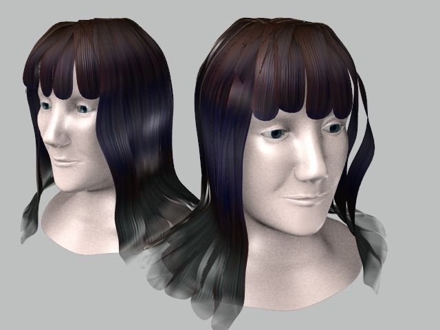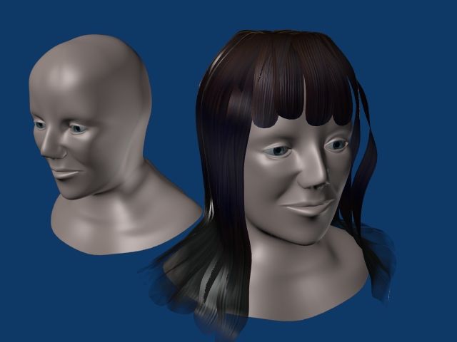 Lo importante, tu modelo está mejorando. Podrías mejorar también los mapas de opacidad del pelo, para que no se noten los bordes. ¿no está un poco grueso el tabique nasal? Saludos.