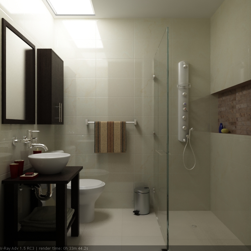 Saludos, estoy trabajando en esta escena de este baño, buscando configurar una buena iluminación. Qué os parece? Será necesario agregar luminarias? Un saludo.