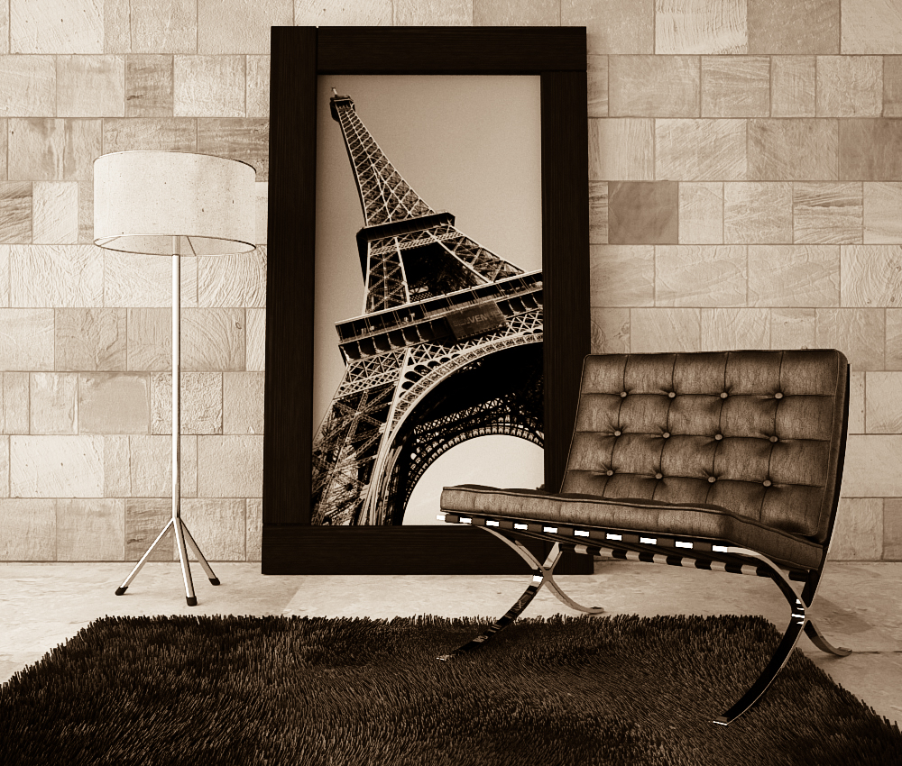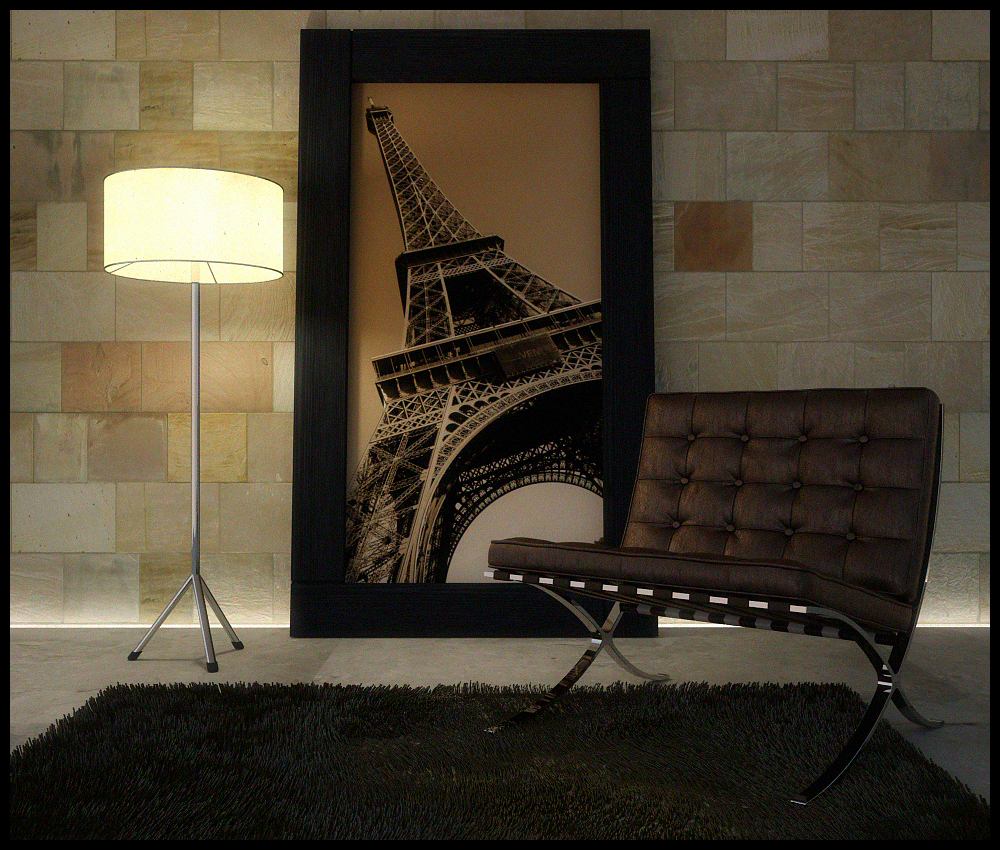 Mensajero, la pantalla de la lámpara lleva un material VRay2SidedMtl con el bitmap (con este material controlas su translucency) y dentro tiene una Vray Light esférica, esta así por el tema de las imágenes de día y diurnas.