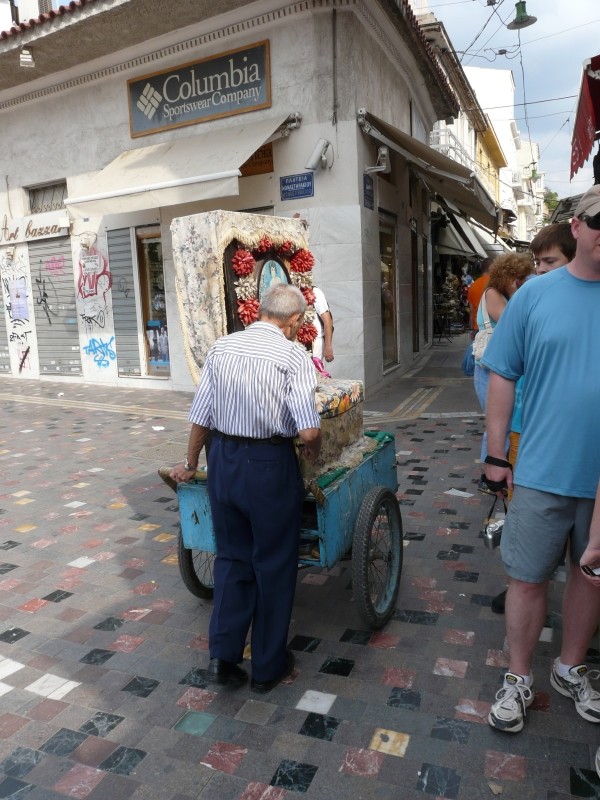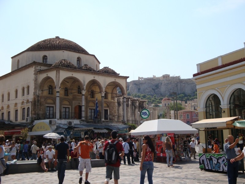 Plaka, el casco antiguo. Callejuelas llenas de tiendas para turistas, restaurantes para turistas, carteristas para turistas.