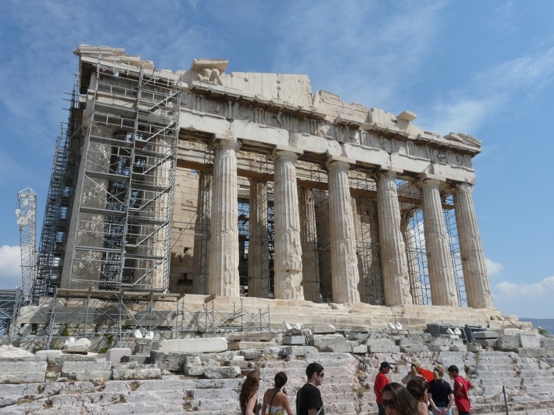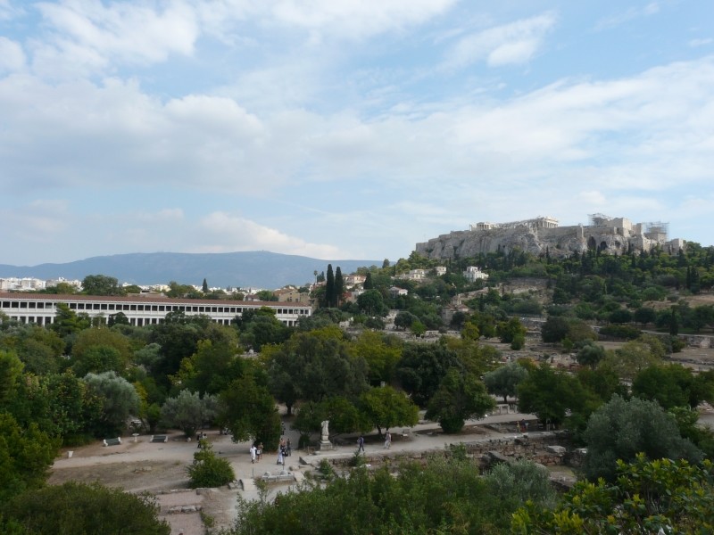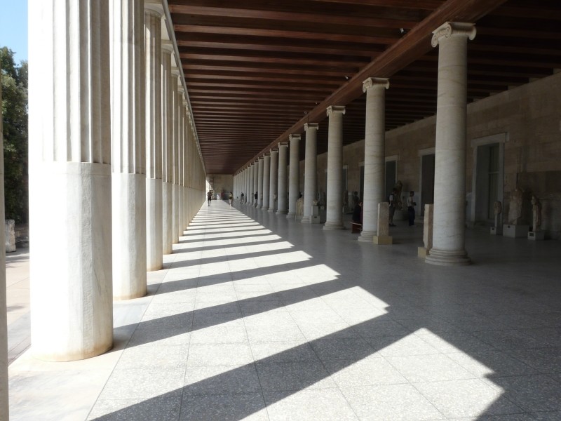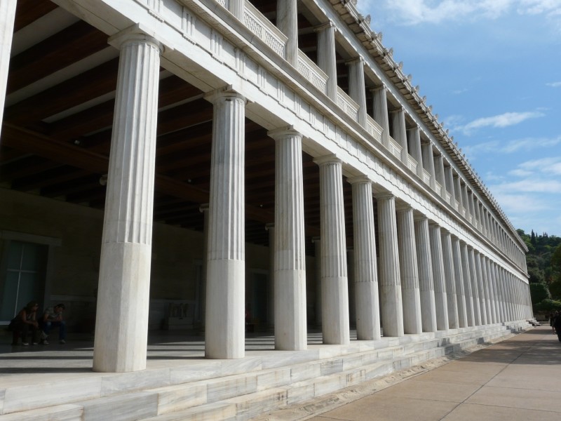 En el antiguo ágora hay menos gente y andamios, y algo más de tranquilidad. La stoa de átalo (no sé lo que es una desesperados).