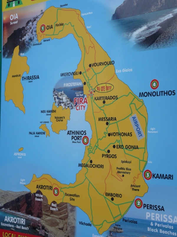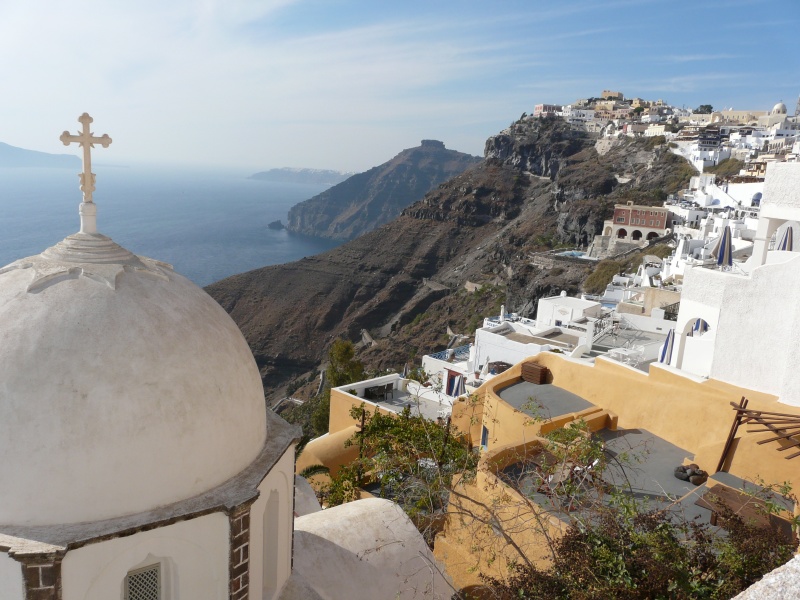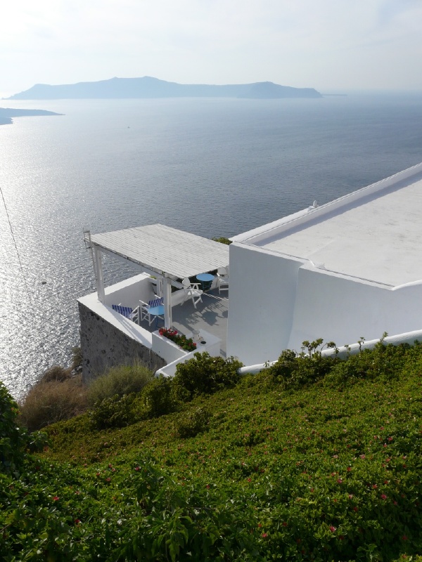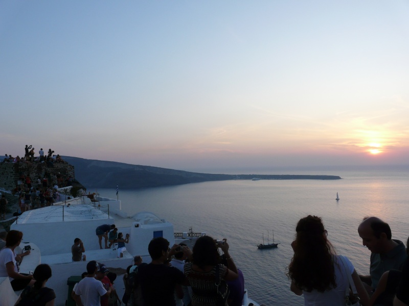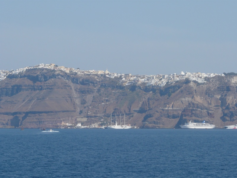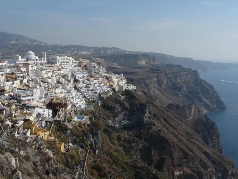 Llegamos en ferry a santorini (4 o 5 horas desde el pireo). Impresionante: un volcán inundado por el mar donde edifican en el mismo borde del crater.