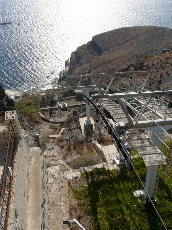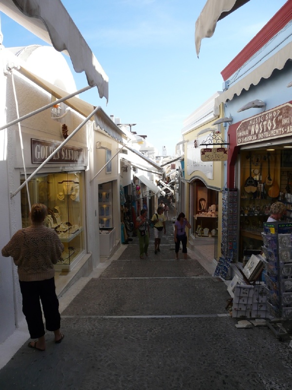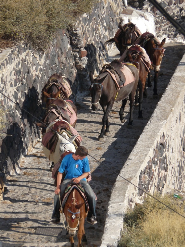 Y fira, la capital. Cuenta con un puerto viejo desde el que puedes subir en teleférico, andando, o en burro.