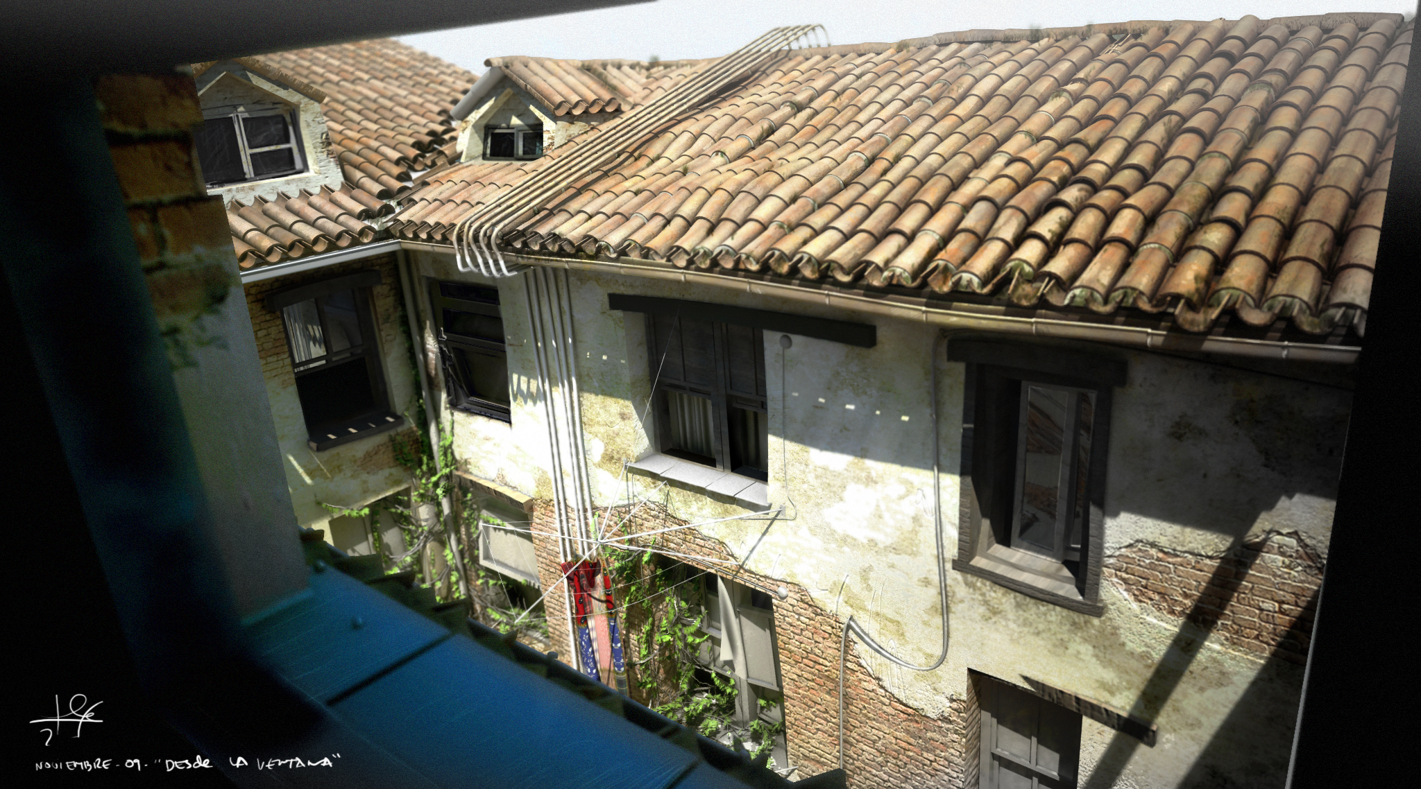 Si pones algo en primer plano dale mucha más calidad que al resto, lo digo por el marco de la ventana que está en primer plano, la geometría y la textura no soportan ese plano, podías hacer unos cuantos ladrillos o usar ZBrush para que te soporte ese plano.
