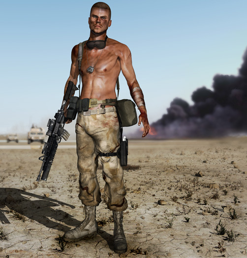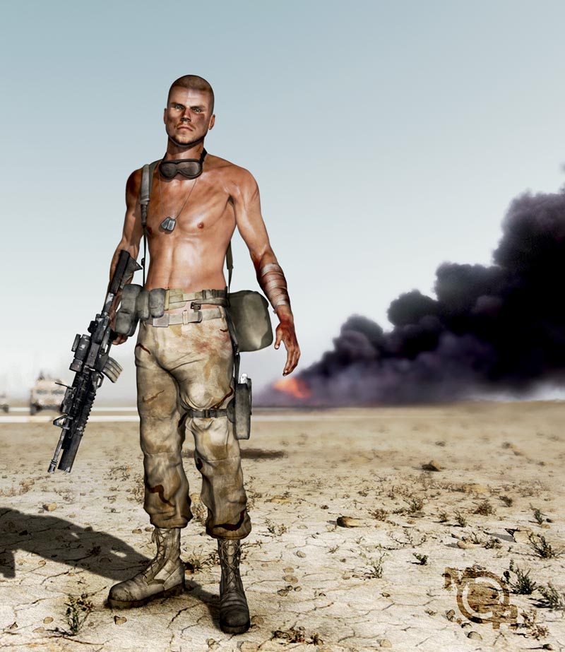 Hola. Ya hace varios meses empecé el modelado de Jack, un marine americano, chulo como el mismo pues bien, una vez terminado el modelo y las texturas empecé el trabajo de postproducción en Adobe Photoshop. Subo un prev para que podáis criticarlo y así poder mejorarlo mucho más. Un saludo y gracias.