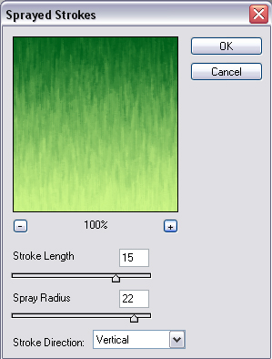 A continuación nos vamos al menú filtro>trazos de pincel>trazos con spray y asignamos los siguientes valores:
