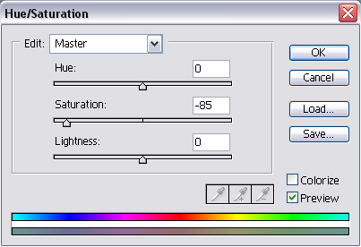 Por último, abrimos el cuadro de diálogo de tono y saturación y bajamos la saturación de la imagen: