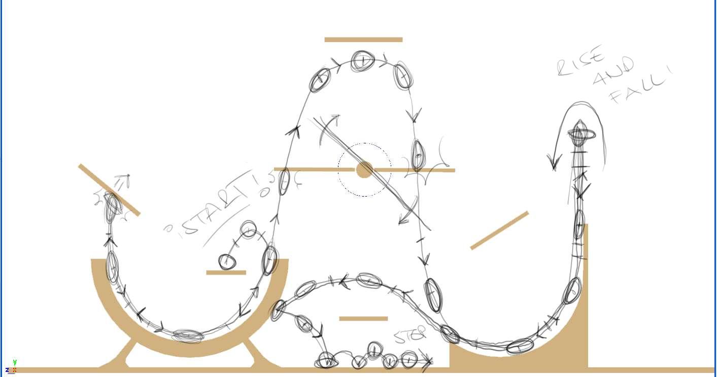 Frames 28 al 37 por el peso que le has metido al principio yo diría que la bola pesa un poco, así que, fíjate que flota demasiado en el aire para luego caer bruscamente rompiendo el arco.
