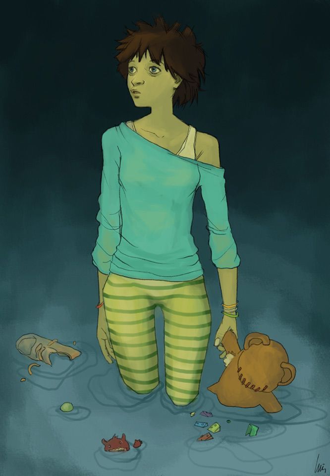 Me encanta todo, sobre todo como has resuelto el efecto del agua. Quizás le daría un ligero toque al pelo para más volumen, pero bah, no hace falta.